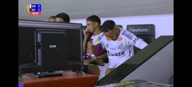 比赛刚开始时,与其他坐在替补席的队友身穿球衣外罩替补马甲不同,内马尔上身穿了件背心,外罩替补马甲。比赛进行到第30分钟,第四裁判提醒他穿上球衣。内马尔刚刚脱掉背心,换上比赛球衣,替补马甲还没来得及穿上,吉列尔梅就制造了点球。主裁判到场边VAR室回看VAR,内马尔和替补席的队友们也凑到替补席前的小电视屏幕前回看争议动作,还跟队友们讨论那个点球该不该判。主裁判判定点球,蒂亚尼奥·苏亚雷斯点球罚进,内马尔欢呼庆祝。