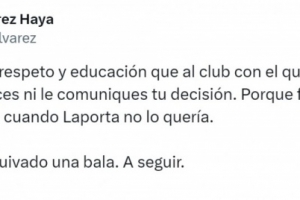 对此Jose Alvarez Haya社媒写道:“这是一种缺乏尊重和教养的行为,你向巴萨推荐自己,却连自己的决定都不通知正与你谈判的俱乐部。”
